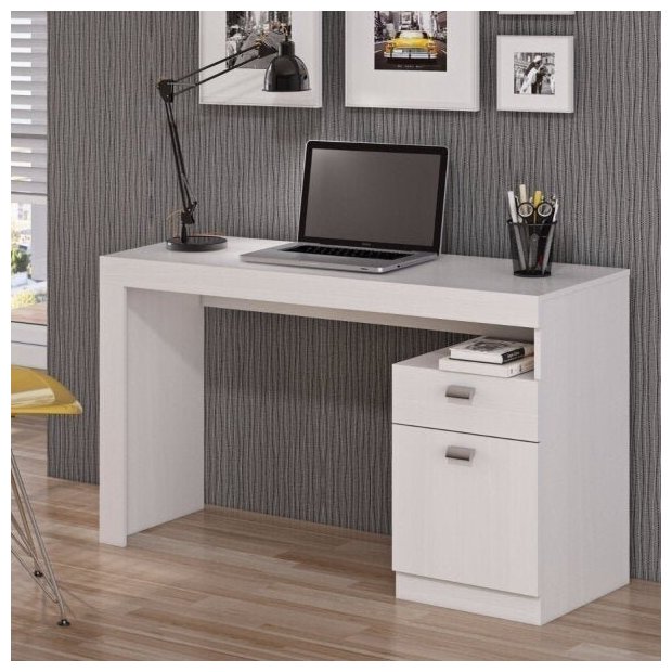 Escrivaninha Mesa Escritório Melissa 1 Gaveta 1 Porta 120cm Branca Branco