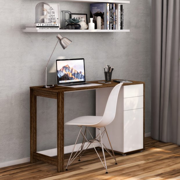 Ver imagem 1 de Escrivaninha Mesa Escritório Zurique 2 Gavetas 1 Porta 120cm Branco E Tannat