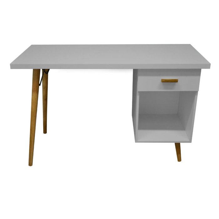 Escrivaninha Mesa Estudos Bancada Madeira Mdf Computador Pé palito Gaveta 78x120x50cm - Cinza claro