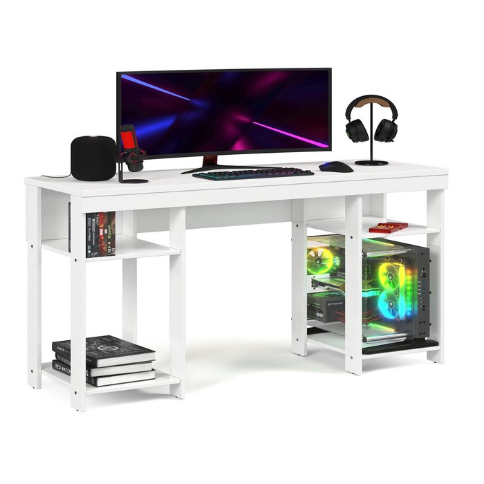 Escrivaninha Mesa Gamer Alfa Escritório Trabalho Notebook Estudo Moveis House Branco Branco