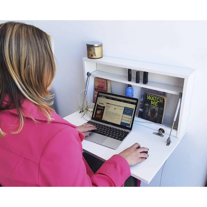 A escrivaninha suspensa é uma excelente escolha para quem precisa economizar espaço. Ela pode ser fixada na parede e se mantém suspensa, sem precisar de uma base ou pés. Isso faz com que a escrivaninha suspensa seja perfeita para espaços pequenos.