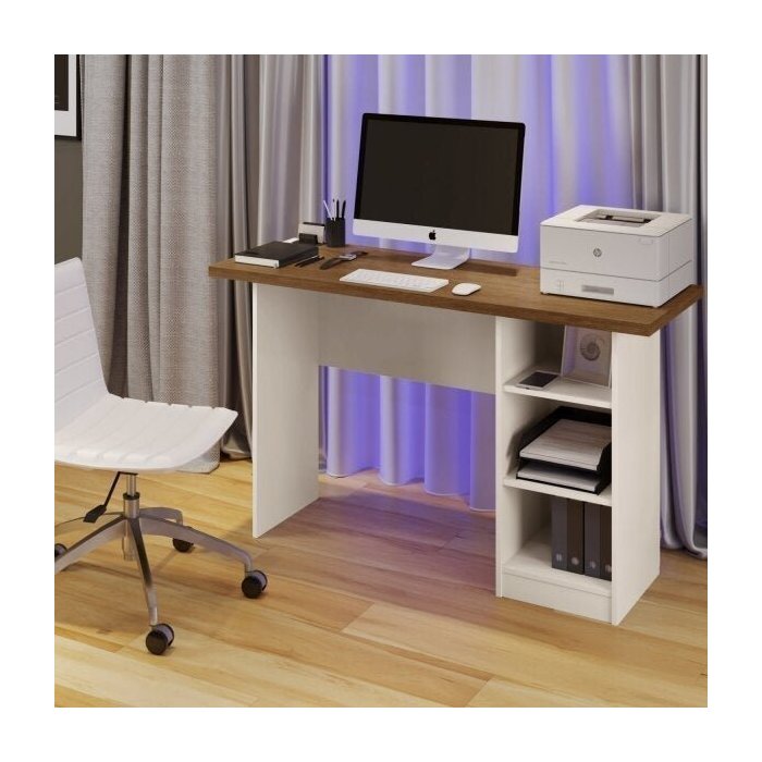 Escrivaninha Multifuncional com 3 Prateleiras Nevada Off White/Canela