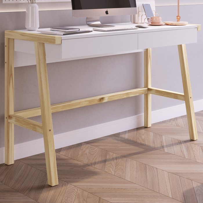 Escrivaninha Noble 120cm Branca com Madeira Pinus Natural Artesano