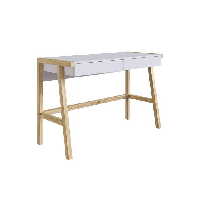 Escrivaninha Noble Branco Pés em Madeira Pinus Natural 120cm - D'Rossi