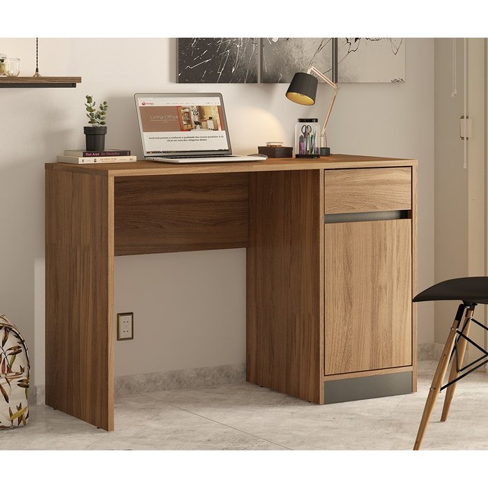 Escrivaninha Office 29600 01 Porta 01 Gaveta Morada Amendola Touch Grafito Demóbile