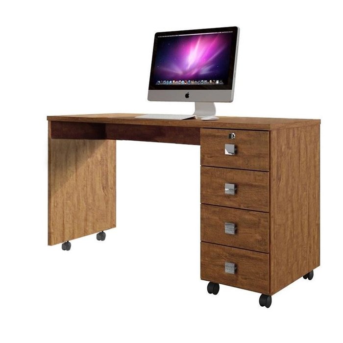 Escrivaninha Office Dubai com 4 Gavetas Amêndoa - PR Móveis Amêndoa