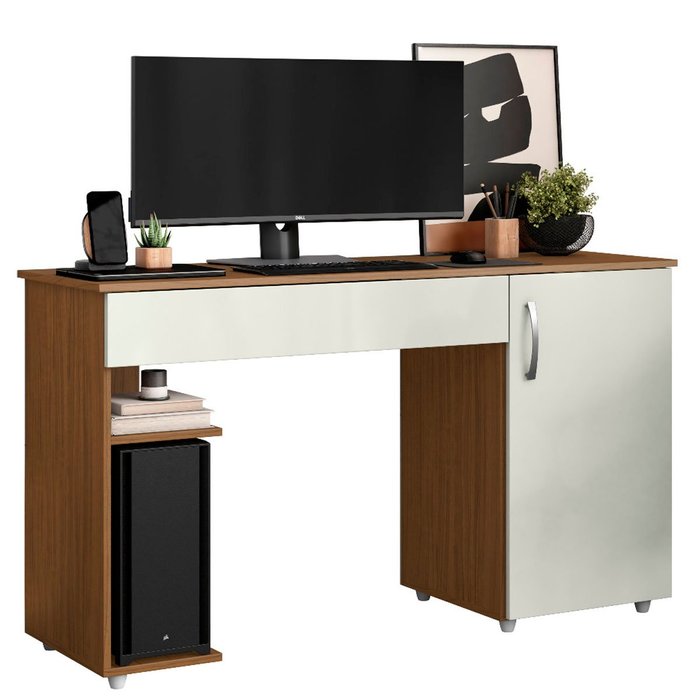 Escrivaninha para Computador 1 Porta e 1 Gaveta com Suporte para Cpu Lara Atacama/off White