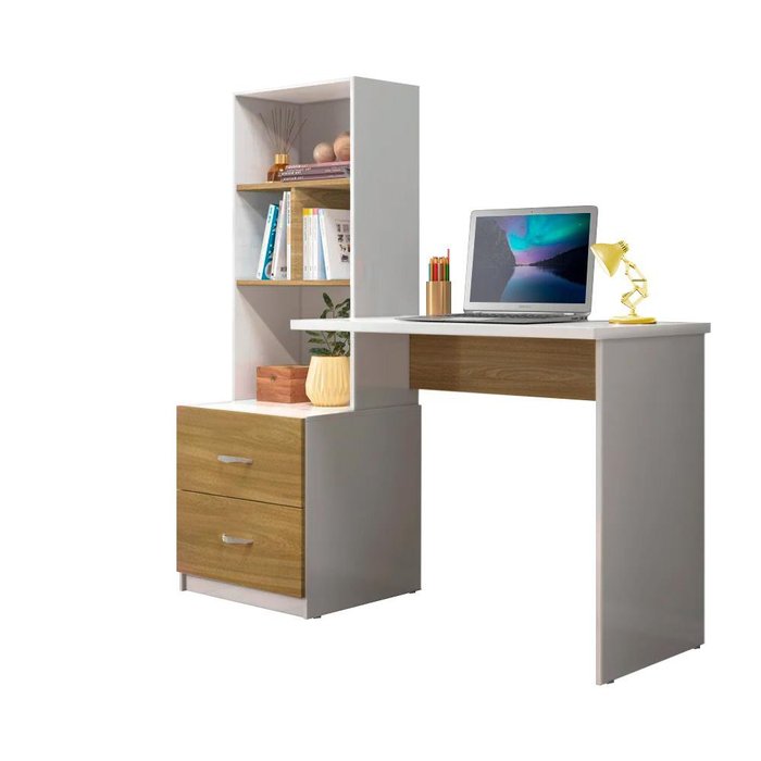 Escrivaninha para Notebook com Estante Cristal Branco Nature Peternella