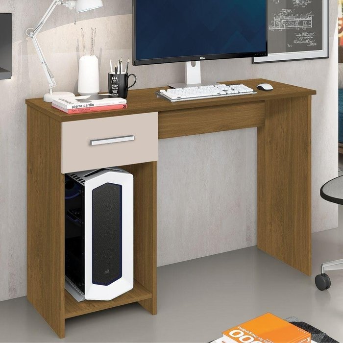 Útil para colocar computador, livros e muitos outros objetos. Possui uma gaveta com corrediças telescópicas.