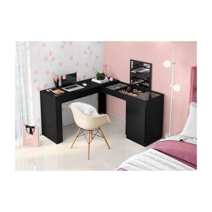 Escrivaninha Penteadeira Canto Star:Preto Preto