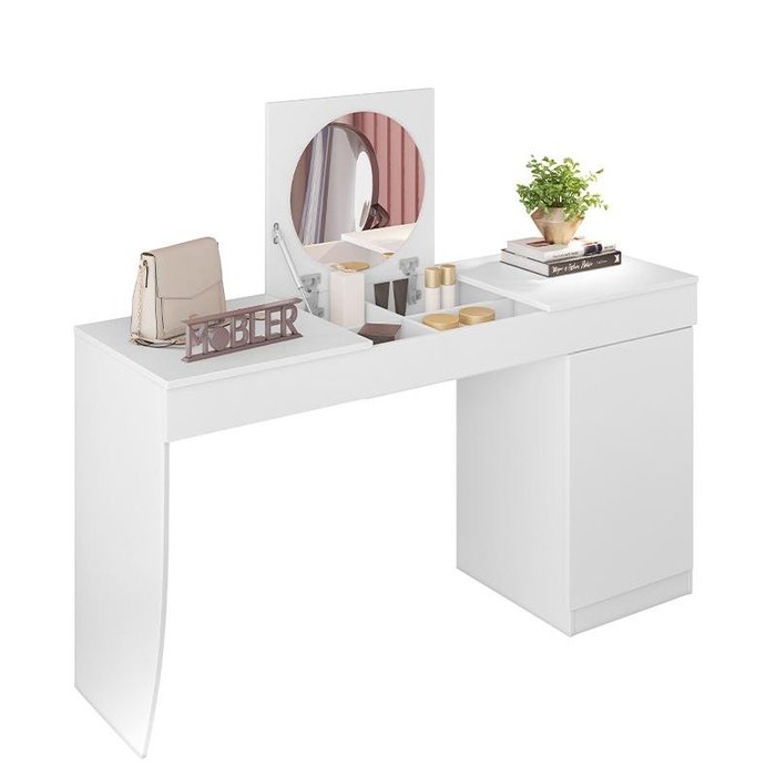 Escrivaninha Penteadeira Crystal Tampo Basculante com Espelho Branco Fosco