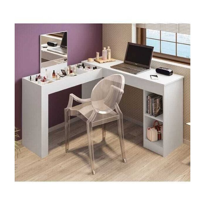 Escrivaninha Penteadeira de Canto Selfie Branco Brilho Milani Movelaria