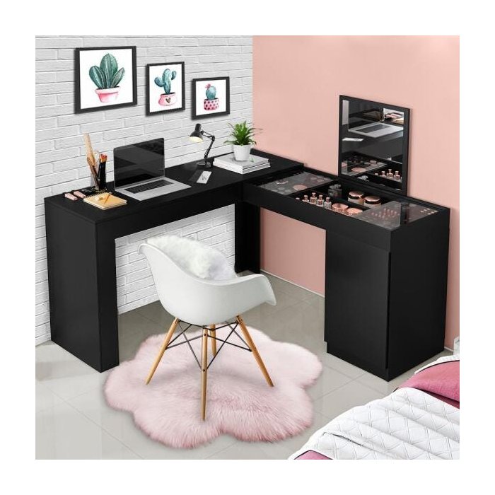 A linda Escrivaninha/Penteadeira de Canto Twister vai deixar seu quarto muito mais sofisticado, bonito e organizado, com seu lindo design desenvolvido para guardar seu objetos de beleza e ainda poder ser utilizado como escrivaninha é perfeito! Além de deixar seu ambiente muito mais bonito e charmoso.