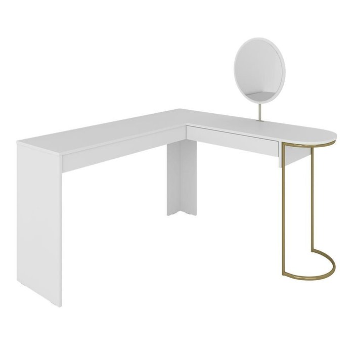Escrivaninha Penteadeira em L com Espelho Mavi Dourado/branco - M.a Dourado/branco Branco