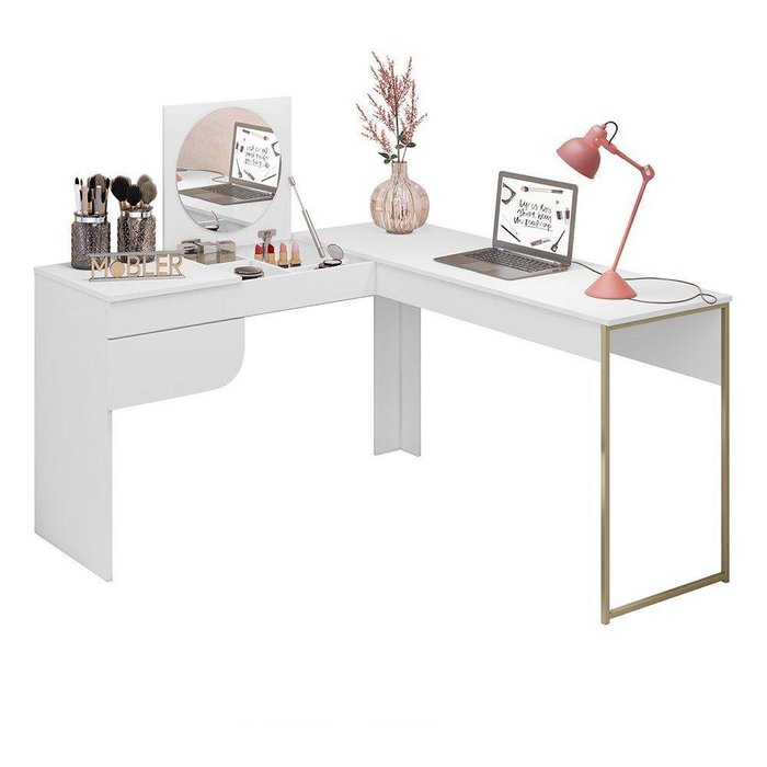Escrivaninha Penteadeira Mobler De Canto Luna Branco Fosco Branco