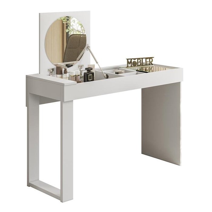 Escrivaninha Penteadeira Play Espelho Basculante e Vidro Branco Fosco