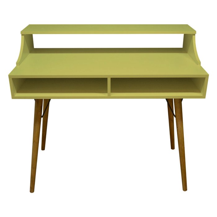 Escrivaninha Penteadeira Vazada Nicho Aparador Pé Palito Retro Madeira MDF 78x100x50cm - Amarelo Amarelo