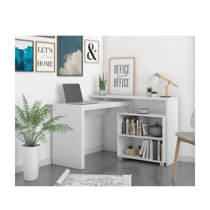 Escrivaninha Reta ou em L com Estante Baixa BRV Móveis Branco