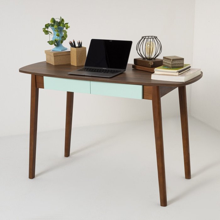 Escrivaninha Retrô 2 Gavetas 120cm Pés Madeira Maciça Filó CabeCasa MadeiraOriginals Pau-Ferro/Verde Claro