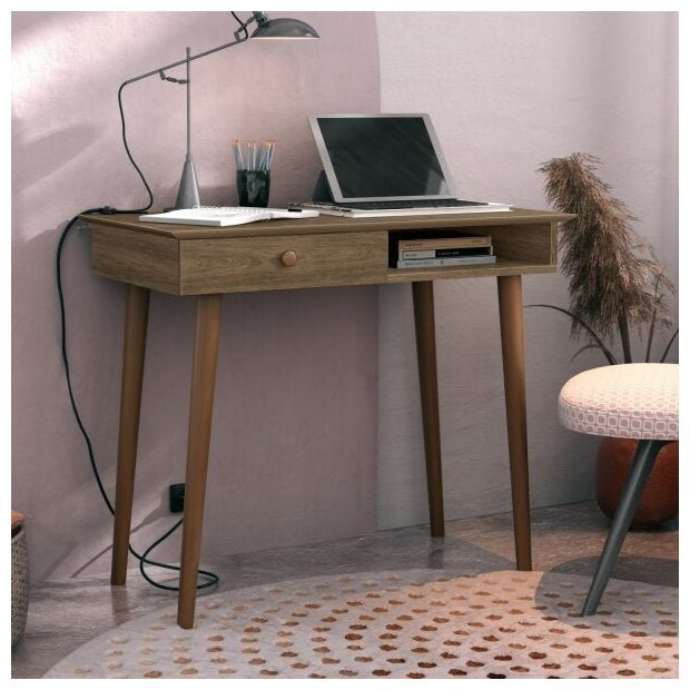 Escrivaninha Retrô Bras Imaza Móveis 1 Gaveta 90cm Castanho Castanho