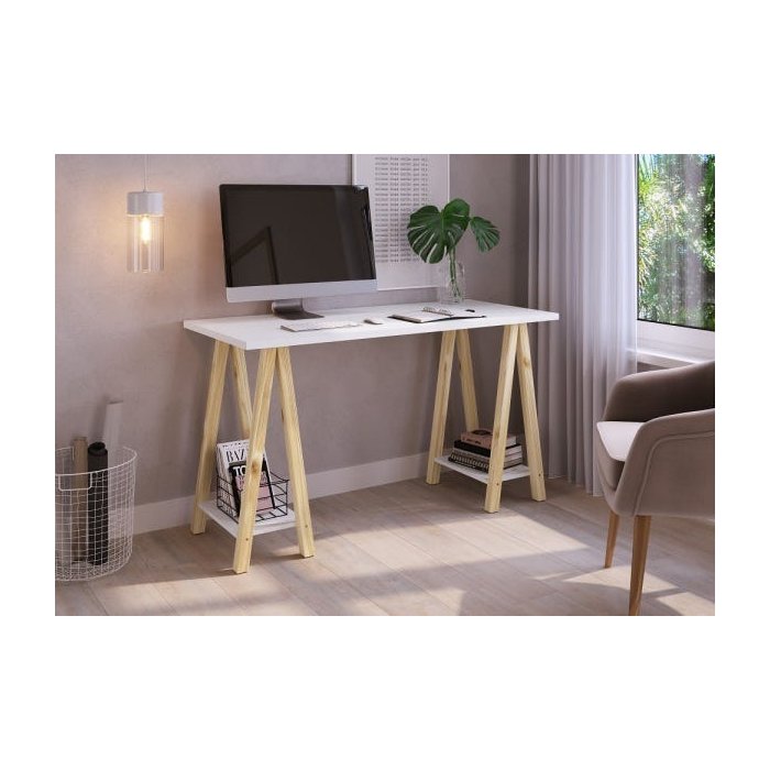 Escrivaninha Studio 136cm Branca com Madeira Pinus Natural Artesano
