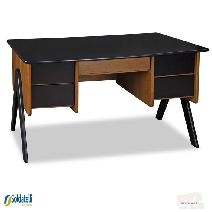 Escrivaninha com 4 pés fixos, 4 gavetas embutidas e corrediças telescópicas.
