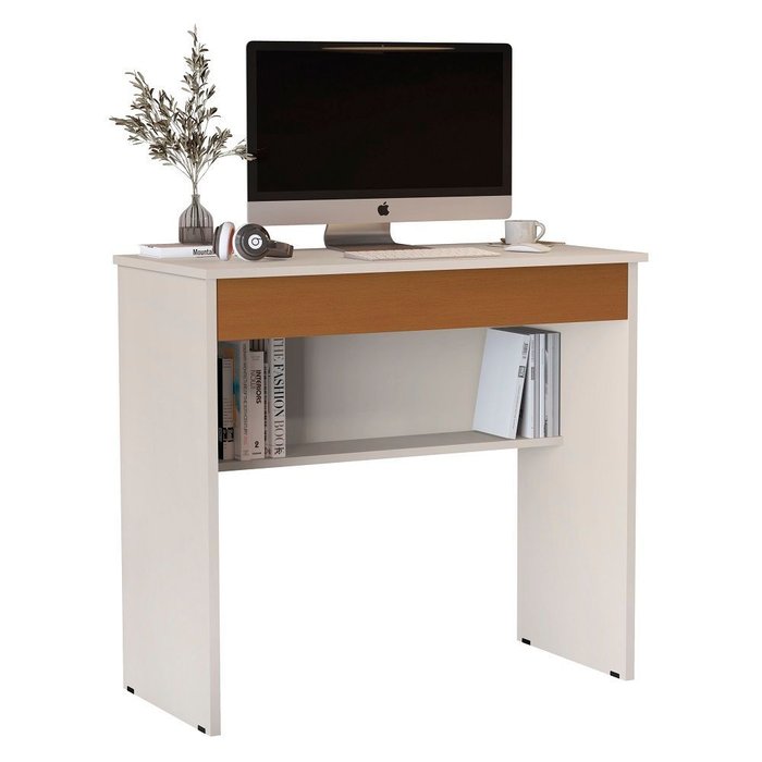 Escrivaninha Vitoria Mesa 70 Cm com 1 Gaveta Nicho Qualitare:offwhite Cedro