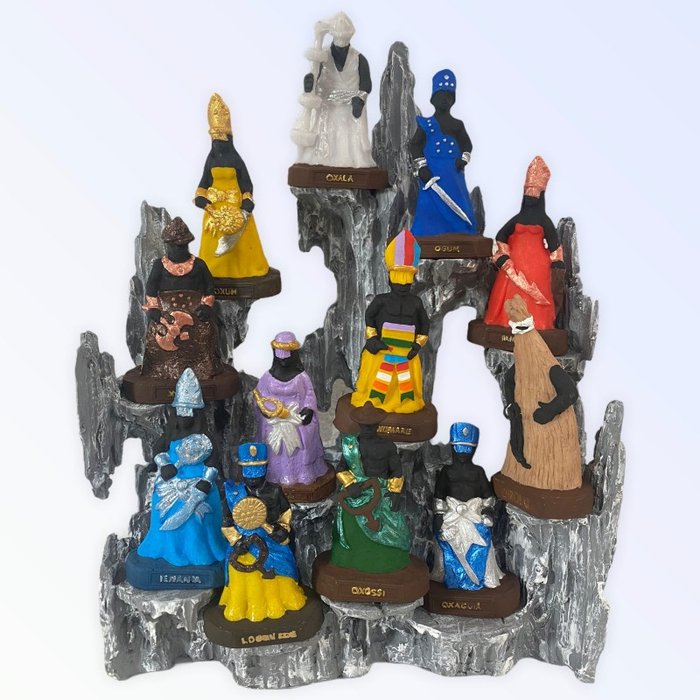 Escultura 30AX23LX14C Congá Completo e 12 Orixás 10cm Cinza