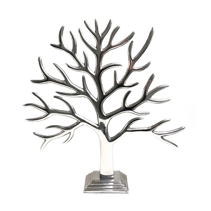 Escultura árvore, produzida em alumínio sob uma base quadrada disposta em subníveis, que sustenta uma haste, dando origem às ramificações. Representa a árvore da vida, cujo significado remete a criação, fecundidade e imortalidade.