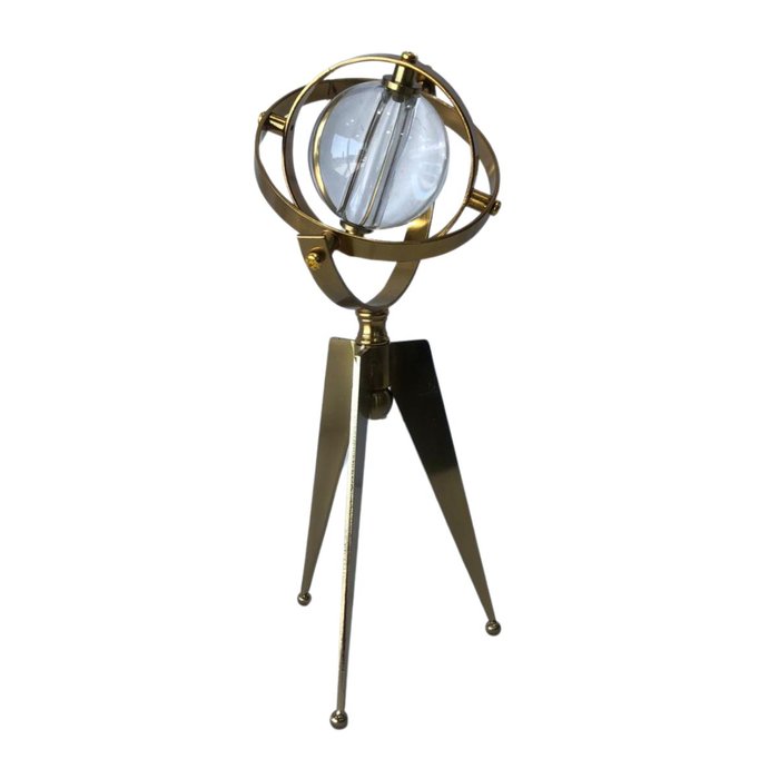Escultura Astrolábio em Vidro e Metal com Pé Gold 28x10,5 cm