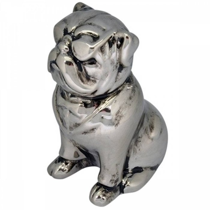 escultura cachorro JAVIER 9,5cm Ilunato XD0101 / dimensões: comp. 9,5 cm; larg. 6,5 cm; alt. 13 cm / resina com acabamento prata / 3 meses de garantia / Ilunato / XD0101