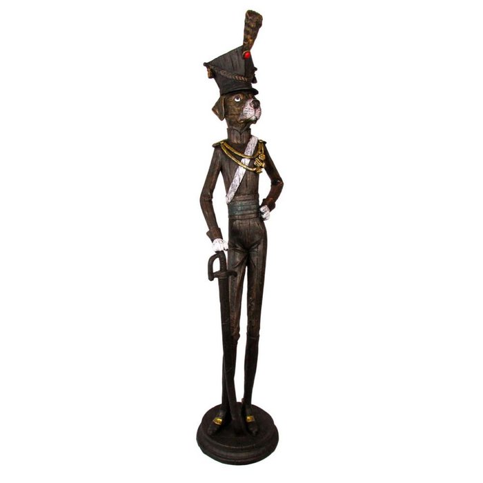 Escultura Cachorro Fardado Soldado Decorativo Peça decorativa extremamente elegante e charmosa perfeita para decorar ambientes mais sofisticadados dando aquele toque todo especial que faltava no seu decor, somente na jemima casa você encontra peças como essa com muito estilo e exclusividade. Garantia sob qualquer dano no transporte! Dimensões do prodoto: Altura: 84 cm Largura: 18 cm Comprimento: 86 cm Características do protudo: Material: Resina Cor: Marrom Marca: Jemima Casa