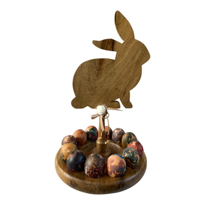 Escultura Coelho em Madeira C/porta Ovos e Ovos Naturais G