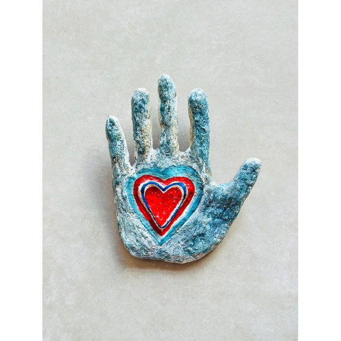 Escultura de parede. Coração na Mão / Mão com Coração. Moldada a partir do barro e cola. Finalizada com pintura à mão. Cada peça é única.