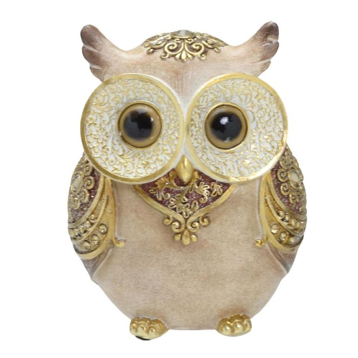 Escultura Coruja Decorativa em Resina Bege e Dourado 14cm Bege e Dourado
