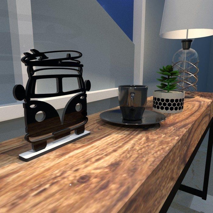 Escultura De Mesa Enfeite Kombi Prancha De Surf Praia Preto