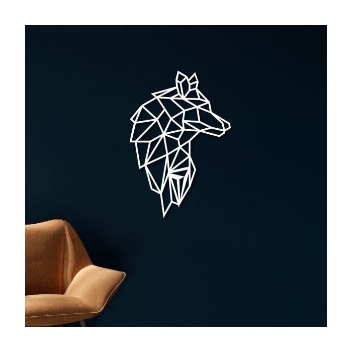 Escultura de Parede em MDF Lobo Geométrico Branco - 27cm x 40cm -