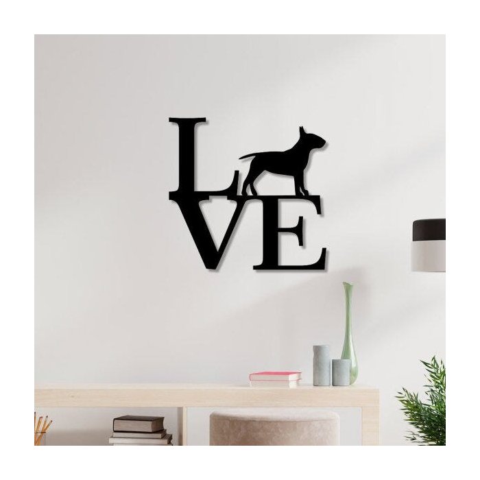 Escultura de Parede em MDF Love Bull Terrier Preto - 60cm x 58cm -