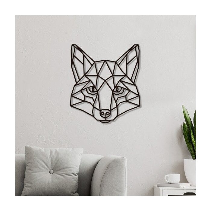 Escultura de Parede em MDF Raposa Geométrica Preto - 53cm x 60cm -