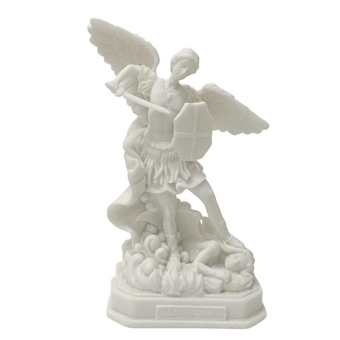 Escultura Decorativa Arcanjo Miguel em Po de Marmore 21cm