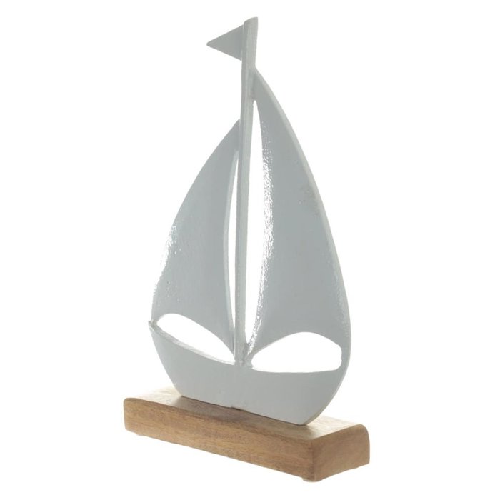 Escultura Decorativa Barco em Metal Base em Madeira Bco 27cm