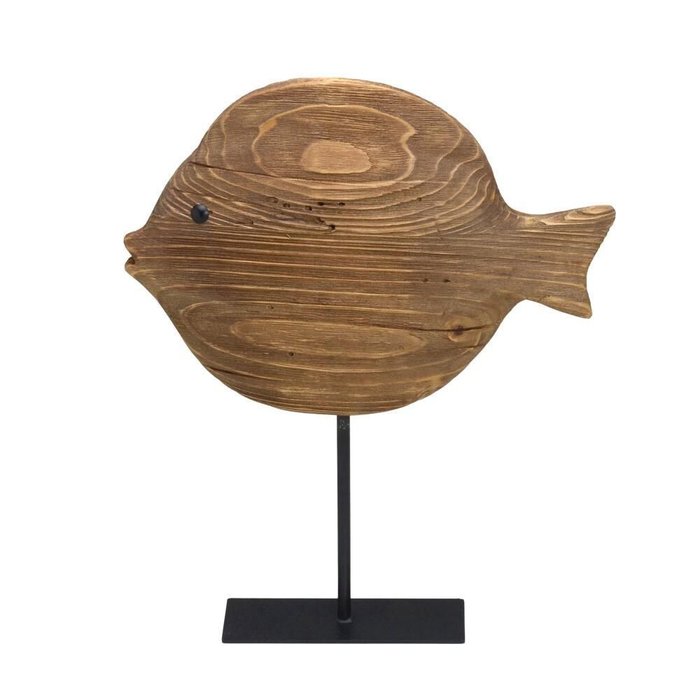 Escultura Decorativa Peixe Madeira e Metal 36cm Espressione