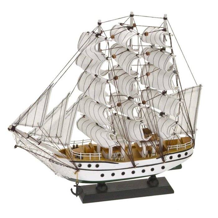 Escultura Decorativo Barco de Madeira Branco 37cm PARIS LUZ