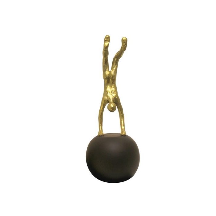 Escultura Equilibrista Dourado na Bola Preta em Resina