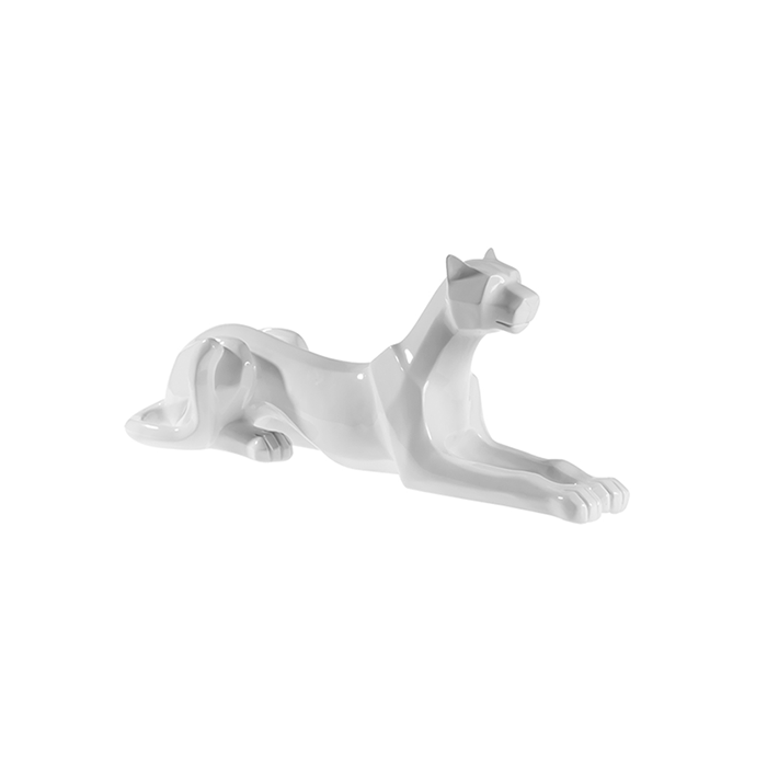 Escultura Estátua Pantera Leopardo Jaguar Geométrica 30cm:branco Brilho