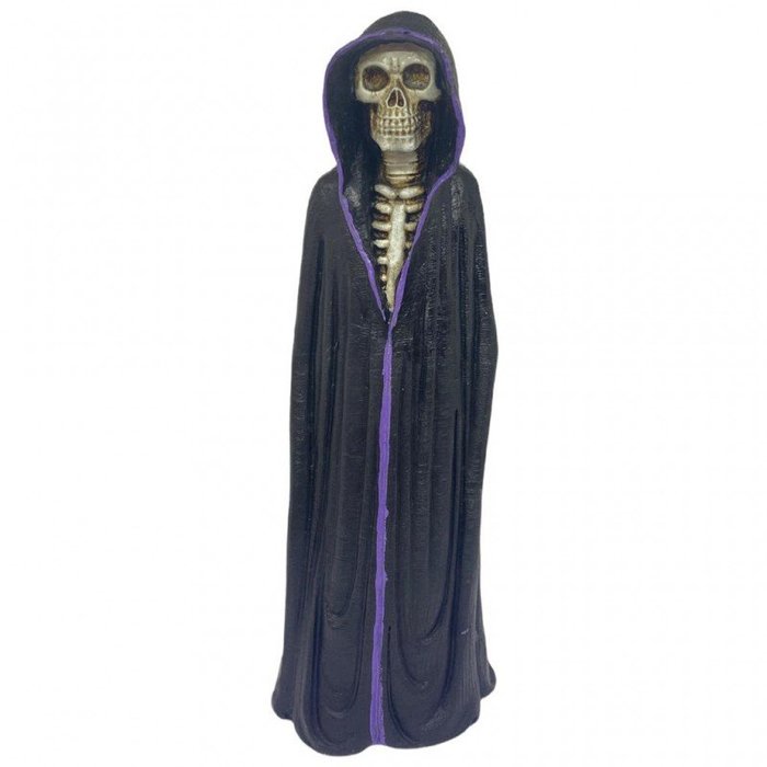 Escultura Exú Caveira em Pé Manto Preto e Roxo 22 cm em Resina Preto e Roxo