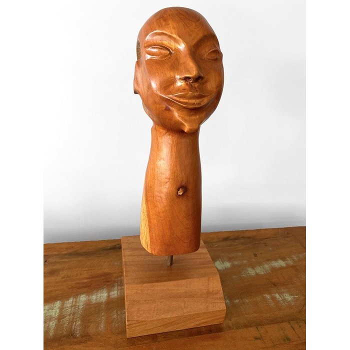 Escultura Head. Cabeça em Madeira. Artesanal. Decoração