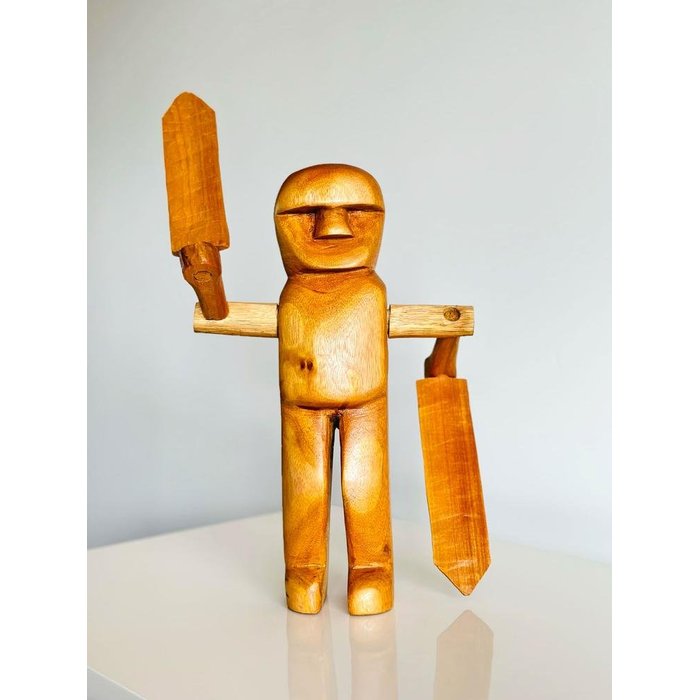 Escultura articulada com braços grandes e pás sensíveis à ação do vento, esculpida à mão em madeira Amarelo, pelo Mestre Fida, utilizando apenas serrote, escopo e facão. A figura do cata-vento remete memórias de infância do artista. Medidas (A x L x P): 35 cm x 25 cm x 40 cm Peso: 900 Gr * Demais peças, quando exibidas nas fotos, estão apenas como sugestão de composição, e não acompanham o produto em destaque.
