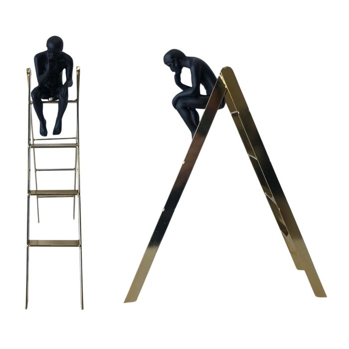 Escultura Hygge Pensador Rodin com Imã em Escada Dourada 30x21x7 cm