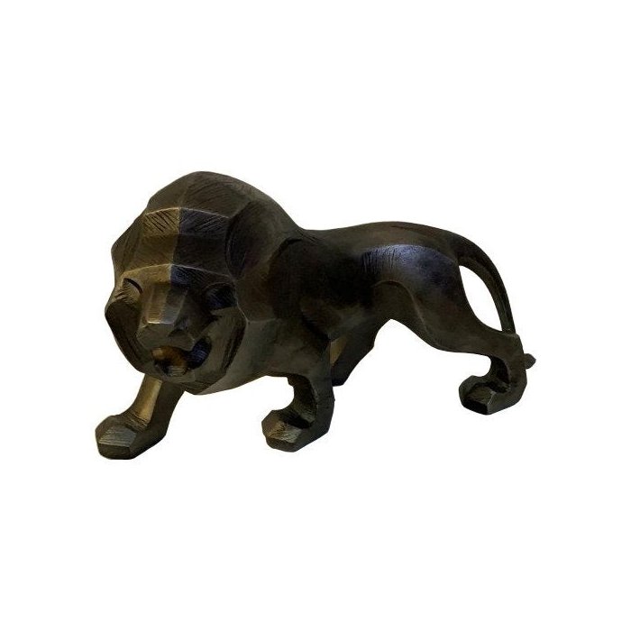 ESCULTURA LEÃO AÇO ESCOVADO EM RESINA